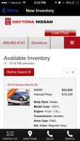 Daytona Nissan met maintenant tout ce dont vous avez besoin dans la paume de votre main! Daytona Nissan regorge de professionnels ici pour aider votre service Nissan, vos besoins en matière de ventes et de pièces. Parcourez notre application et examinez Nissan Inventory Online, demandez plus d'informations sur les véhicules, planifiez un essai routier ou vous renseignez-vous sur le financement.