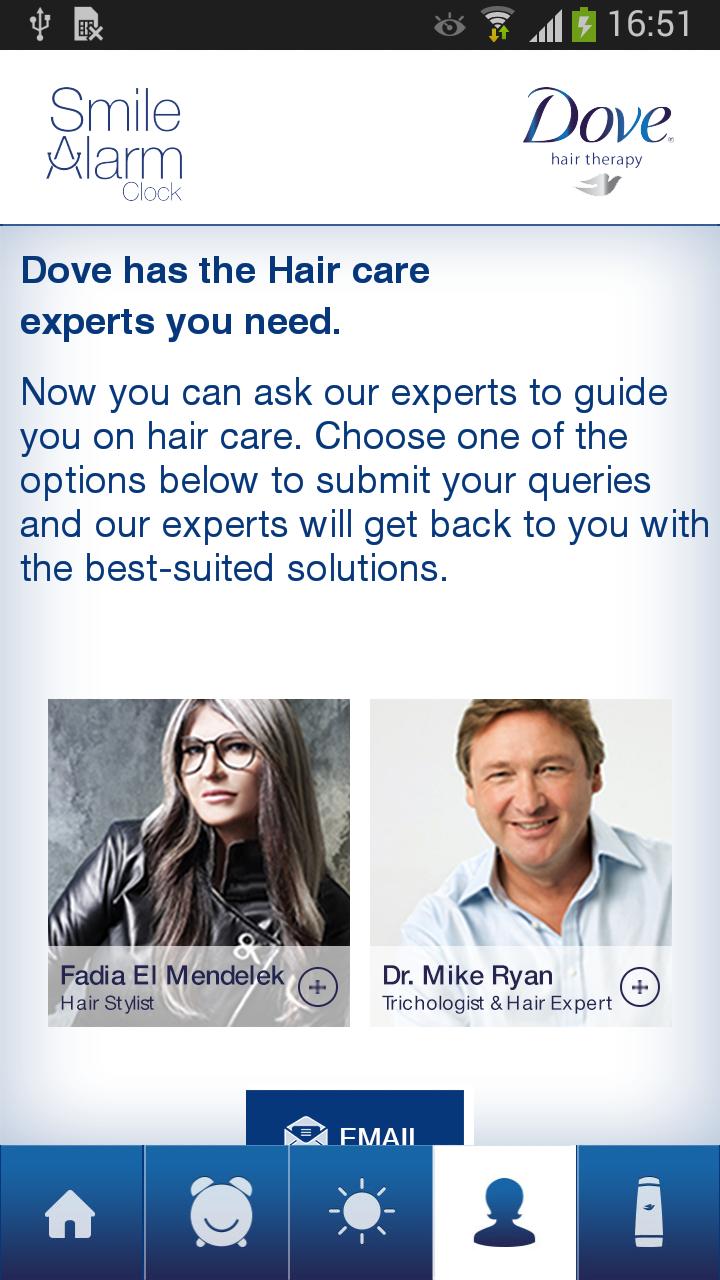 Consulter des experts: Envoyez des requêtes pour des solutions de Dove Hair Experts via l'application