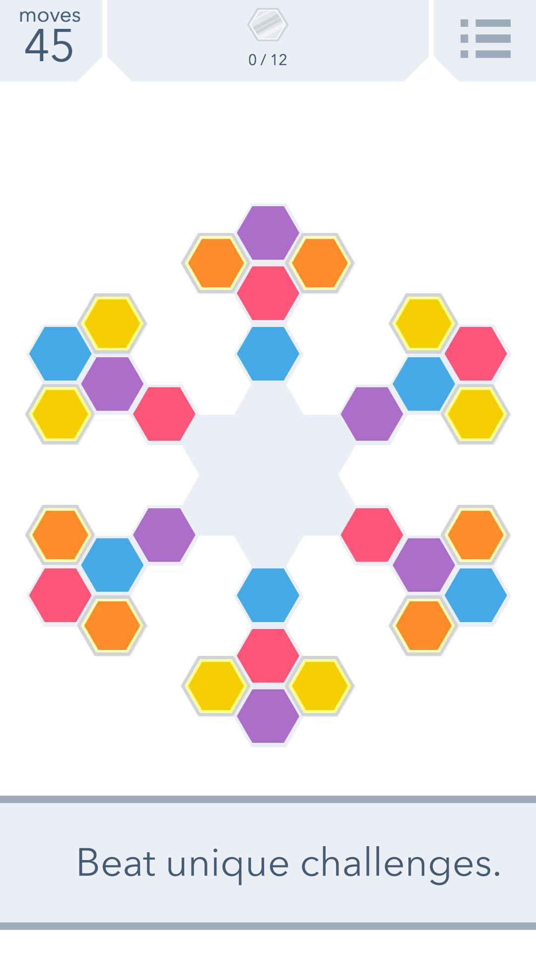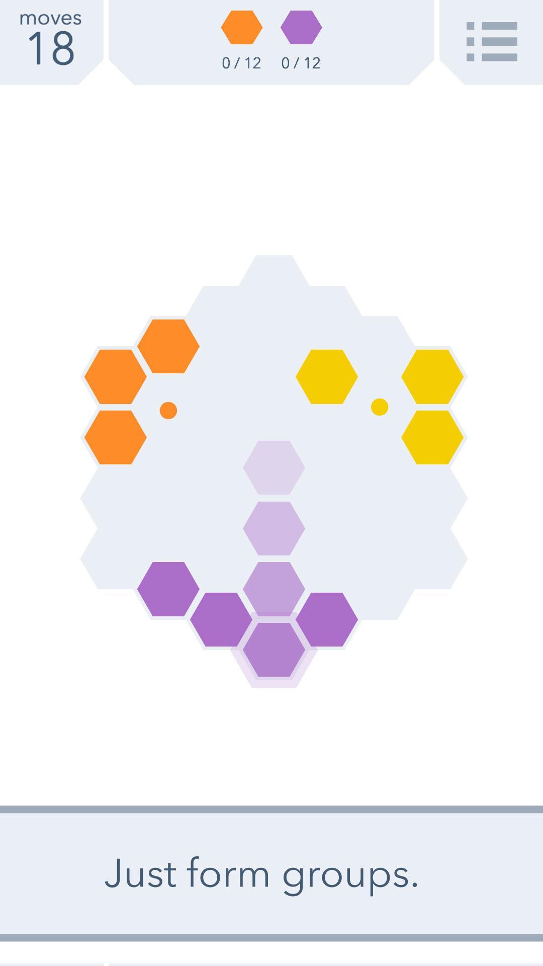 Créez simplement des groupes d'hexagones dans ce jeu de puzzle élégant et pliant d'esprit.