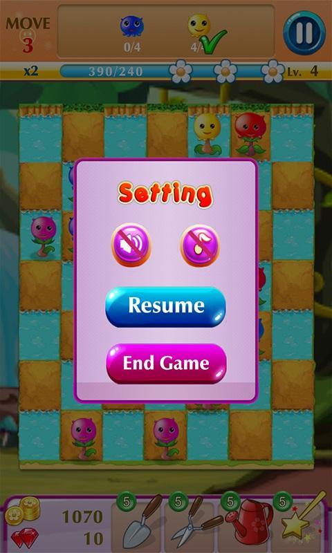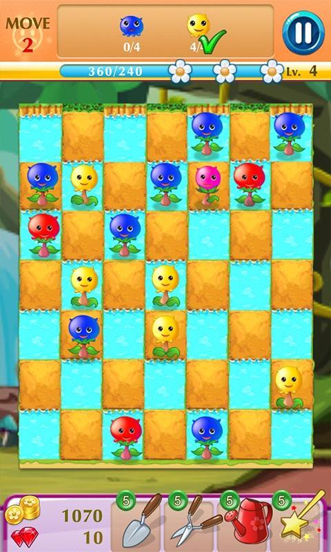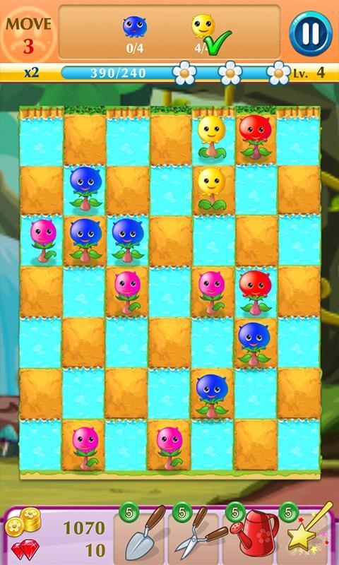 Vous devez faire correspondre 4 fleurs mignonnes ou plus pour compléter la cible des niveaux dans Lines Flower Paradise .