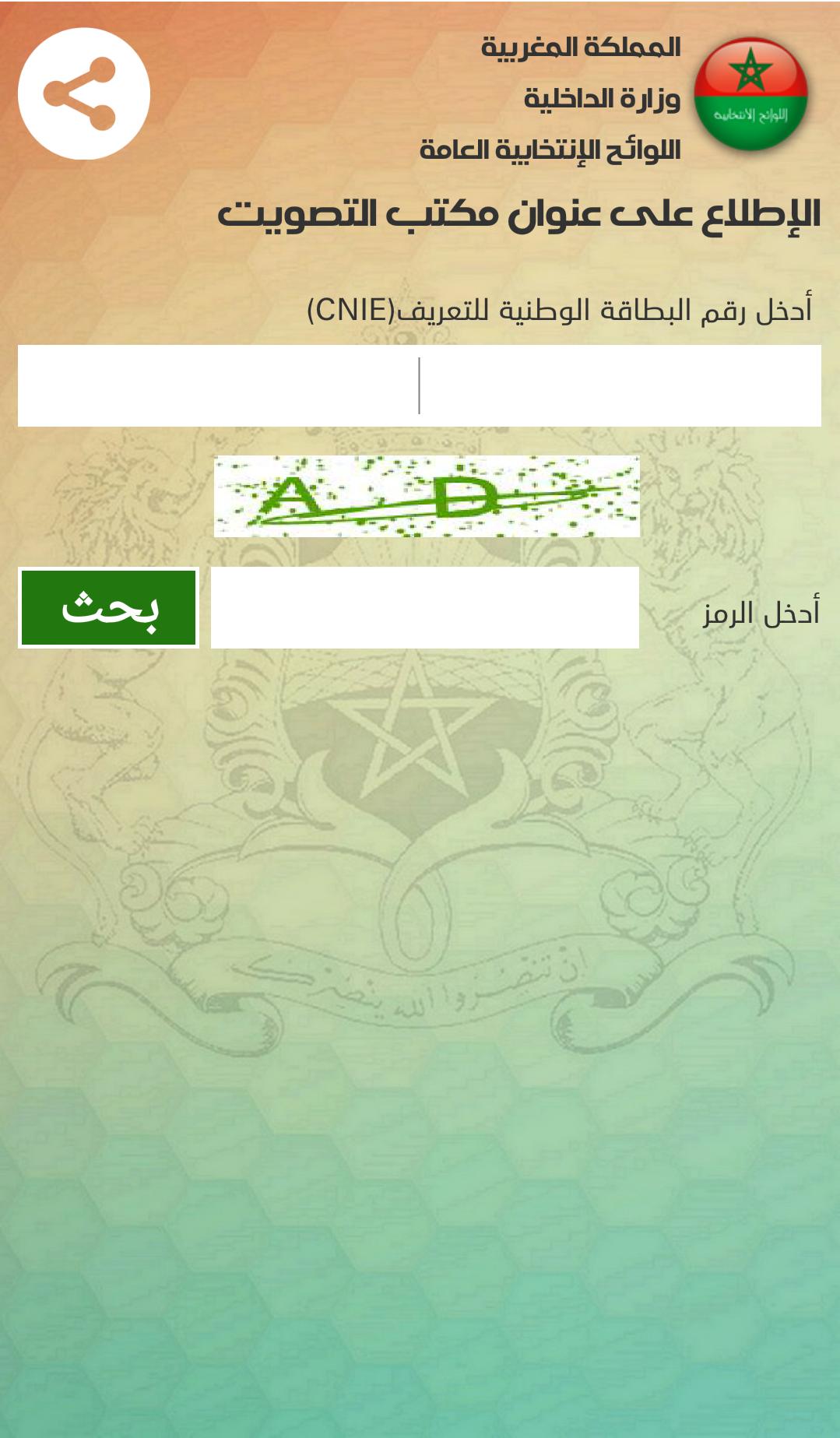 تطبيق تم إنشائه من طرف وزارة الداخلية المغربية لتمكين الأشخاص المسجلين في اللوائح الإنتخابية العامة من تحديد موقع مكتب تصويتهم على الخريطة. بإمكانكم تحميل التطبيق واستعماله بكل سهولة عبر :