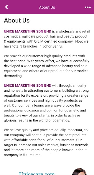 UNICE Marketing Sdn Bhd est un produit de vente en gros et de vente au détail, des produits de soins des ongles, des produits et des équipements de cheveux et des équipements avec une entreprise certifiée OEM. Notre bureau principal est situé à Skudai, Johor Bahru (JB).