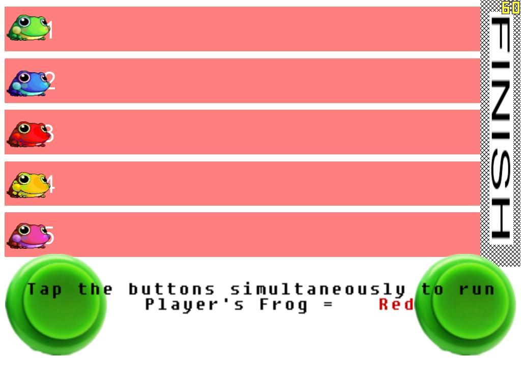 Pick a frog and tap the 2 buttons consecutively to make it run, reach the end first to win
