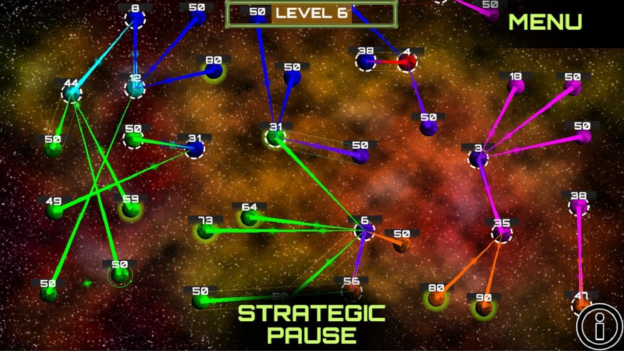 Galactic Empire is a 2D strategy game in which you need to take possession of all the planets in the galaxy to win. You will start the game with a single planet under your domain like the rest of enemies and thereafter you have to attack conquered or unconquered planets to take possession of them . You will have a standard, continuous and infinite attack you can increase its speed, frequency and damage. You will also have a planetary improvement for each conquest you achieve, so you can assign to the planet an additional attack (damage, reduction of enemy attack or prohibition of enemy healing) or focus on his defense (healing shield of immunity, revive)
