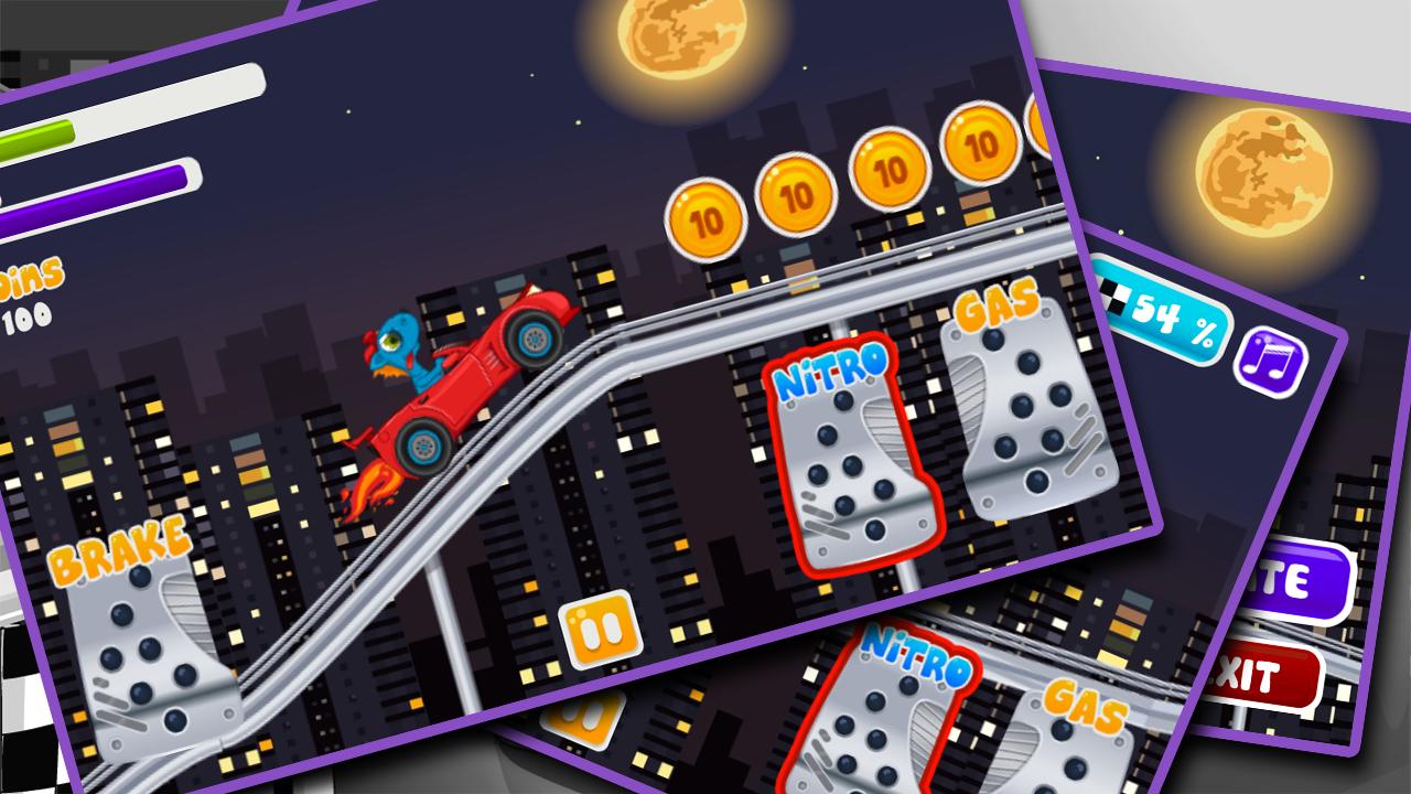 In these bike racing games and car hill climb race games with Gizmo the dinosaur you will get the opportunity to drive in all kind of challenging racing championships. You might have tried driving before on different tracks, but have you ever wondered what is like to drive in the night. Well today you’ll get the chance of getting to the steering wheel of a powerful drag race car and join Gizmo in a race you won’t forget. These are the kind of games for kids for free, which you can play every time you get bored.