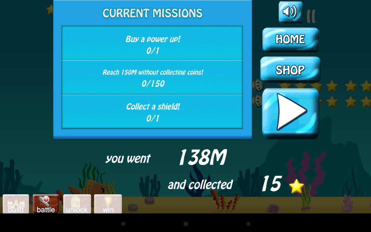 Underwater world contains many obstacles that can end your adventure. Keep away from different killing underwater animals and submarine bombs..
