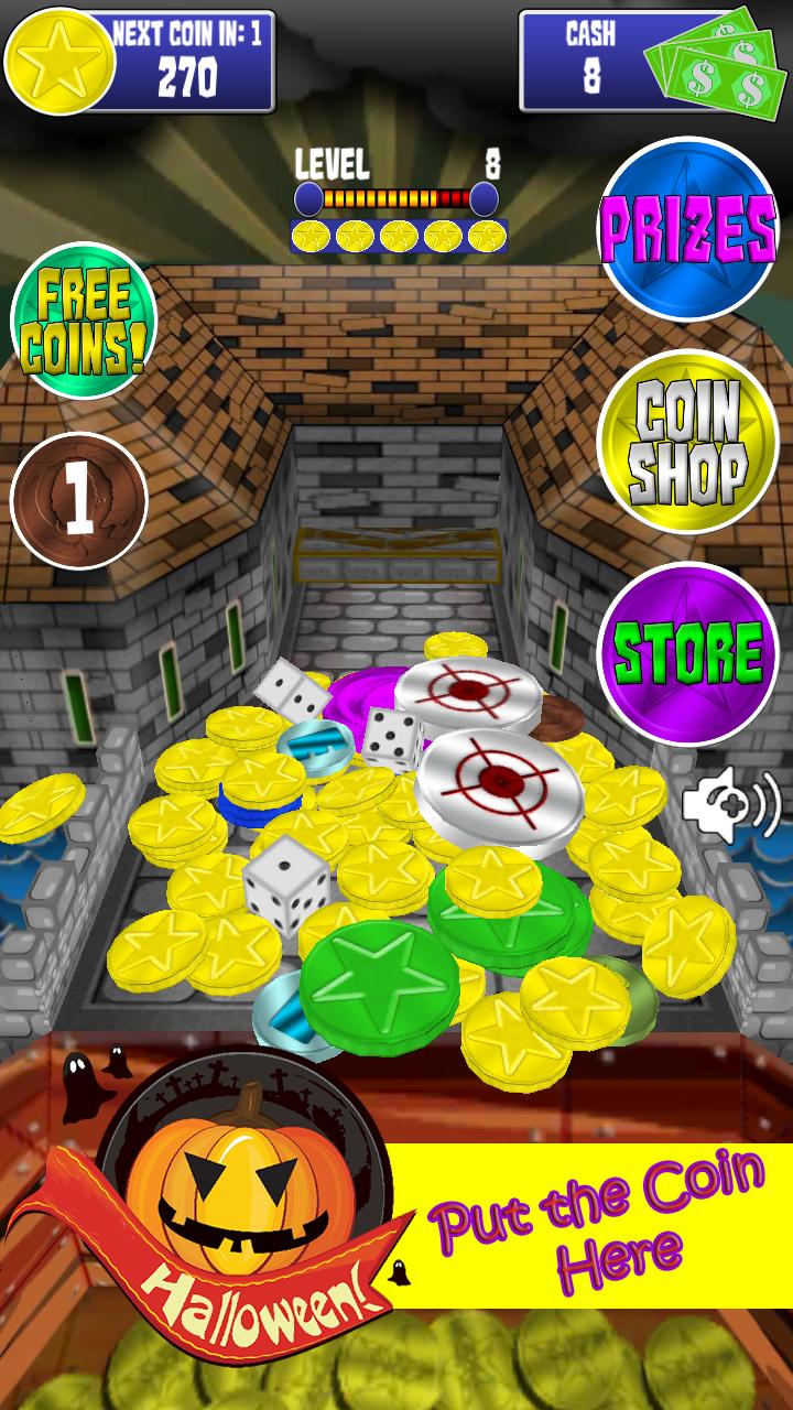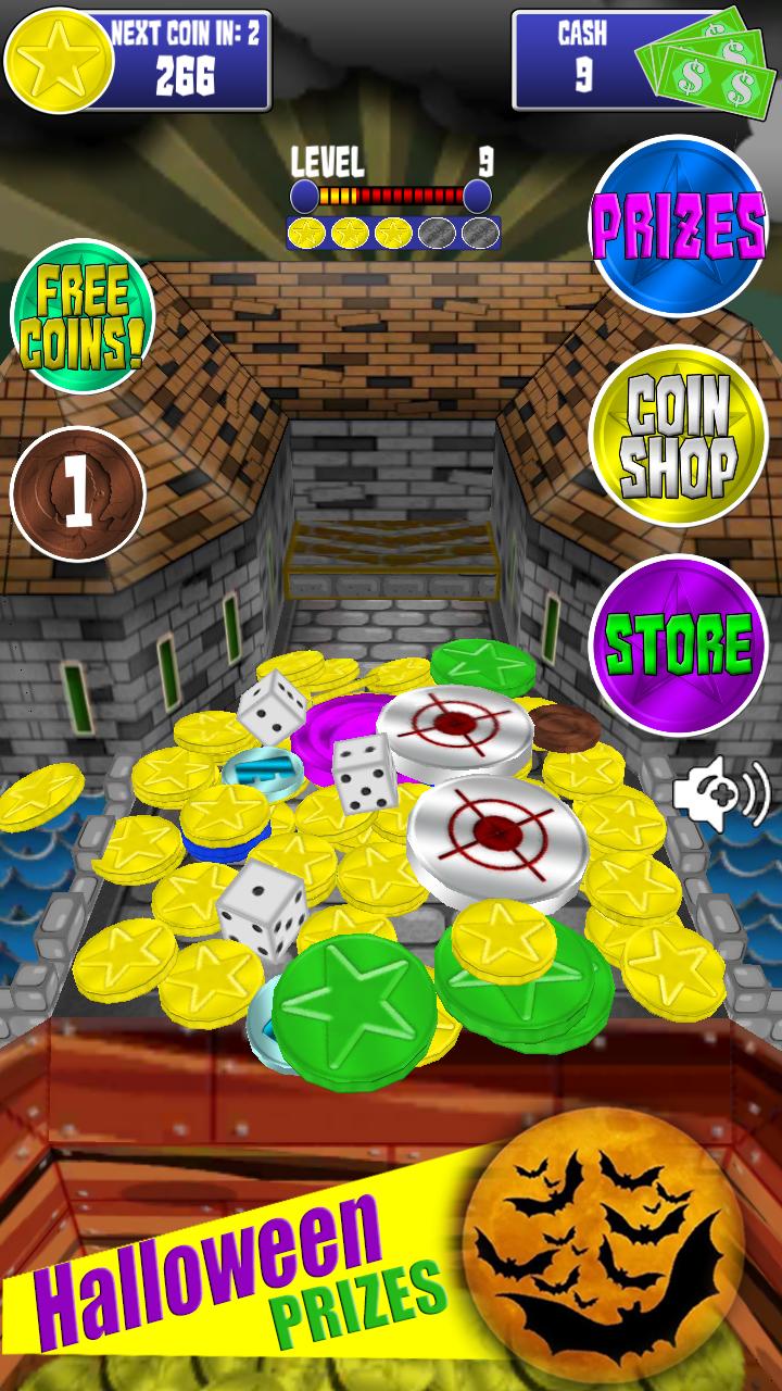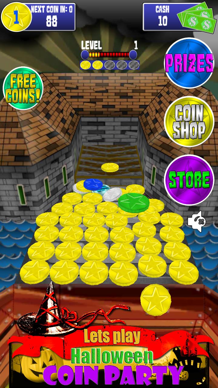 "Halloween Party Coin Mania will keep you hooked for hours just to collect Halloween Coin Party Pumpkin Coin Dozer all the treats and leveling up! Work your way up to the ultimate coin chips jackpot challenge now! coin dozer game! Drop gold coins onto the ship deck as it moves back and forth to push for fantastic surprises or treasure treats! He fined my match pushing machines which collect coins:Coin Halloween Party Candy Dozer flip a coin, toss a coin, push and shake the coins to make up all easy magic tricks with coin Halloween games