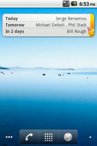 Once daily, the application warns you quietly about event to wish. Then you can contact your friend with customisables mail or sms, or call him directly to organize a party !