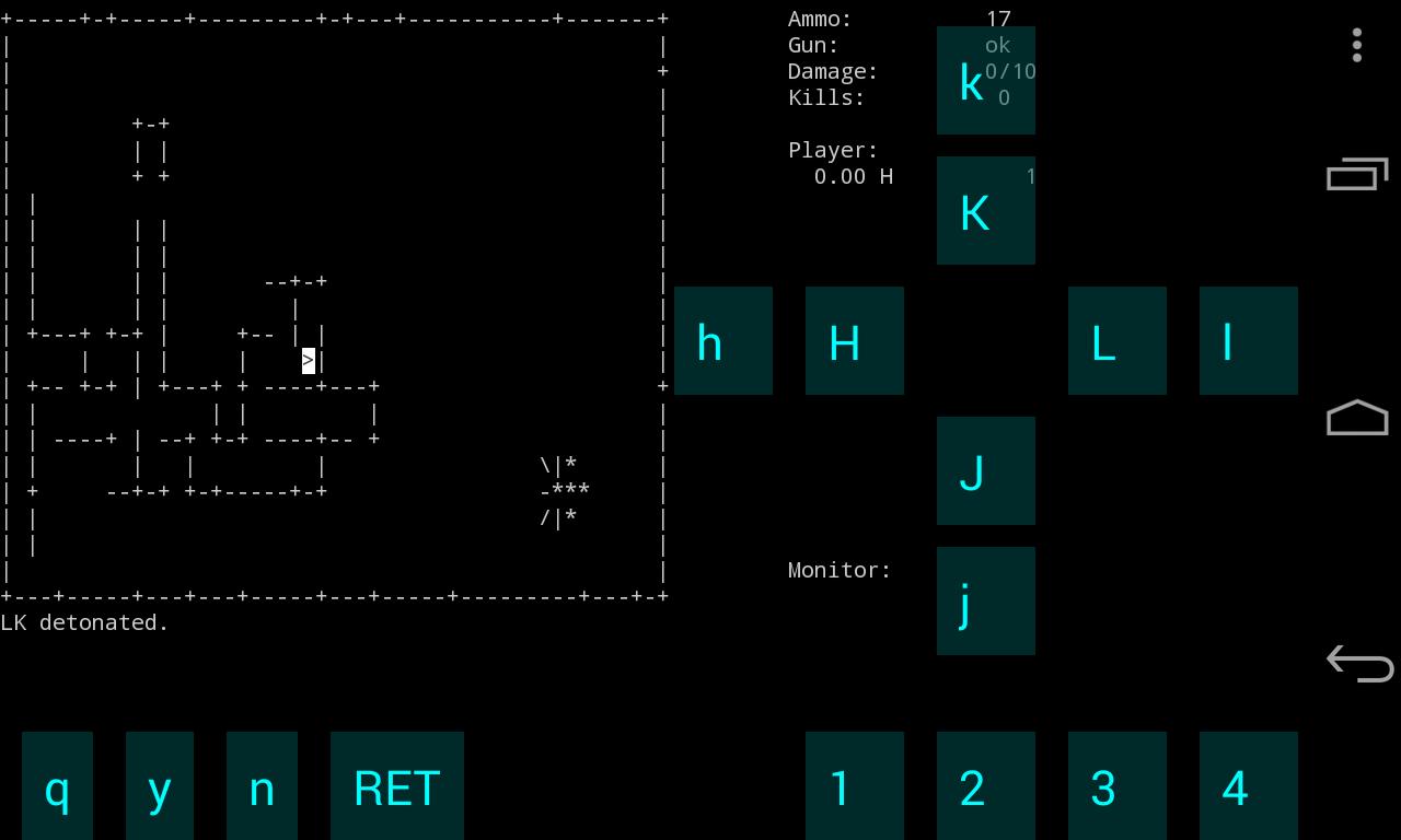 A classic retro android port of 'hunt', a 2-D maze multi-player deathmatch game from the '80s; mud, multi-user dungeon, bbs,terminal games, console, unix, bsd.