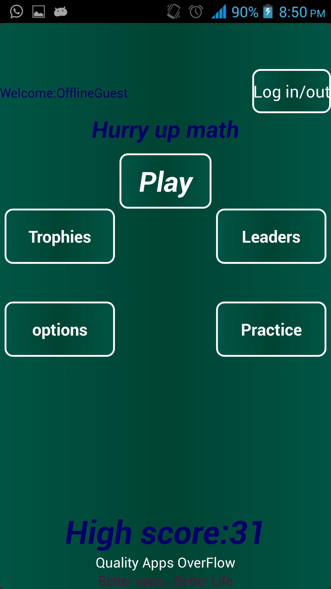 Practice mode: solve same equations of the normal mode, but with no time limit,if you hit the wrong answer, the right answer becomes green, so practice mode is useful for learning purpose.