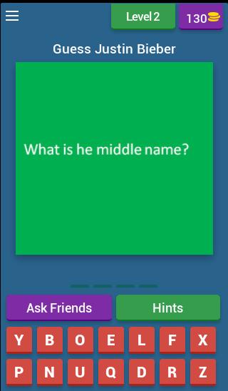 You have to guess Justin Bieber and songs to pass each level by locating right letters at the available space.