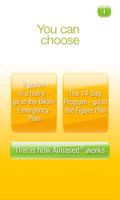 Aplikasi Almasedⓡ memandu Anda baik melalui "Program Figur Rencana" 14 hari atau "Bikini-Emergency-Plan". Anda akan mendapatkan rencana makan terperinci dengan resep untuk setiap hari dan dapat melacak bagaimana pound meleleh.