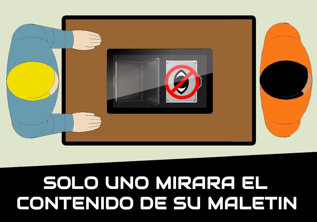 -El jugador 1 mirara el contenido de un maletín, mientras que el jugador 2 no deberá mirar la pantalla del teléfono en ese momento.