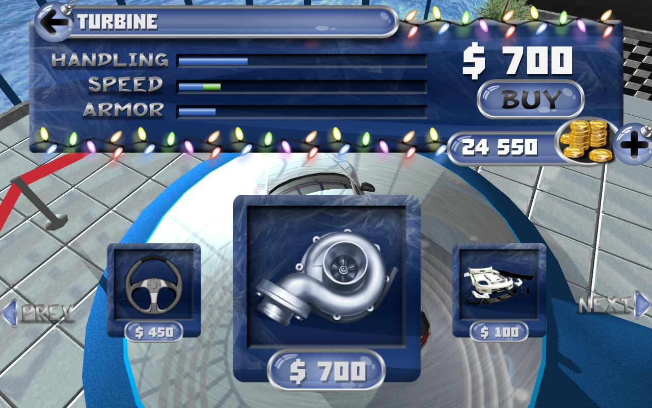 It’s funny racing on snowy track. Skids on turns, zingy drift and swirl of snow from under wheels. No blizzard can stop you. Complete levels, get money and upgrade your car or buy new car. More speed on flat segments or successful tricks on road humps - it’s your choice. Feel the atmosphere of the big winter race.
