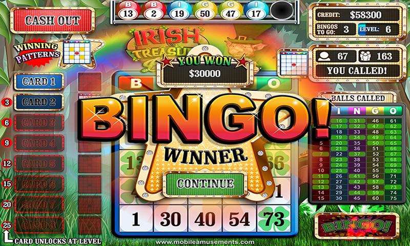Irish Treasure Rainbow Bingo the Irish themed Bingo game from Mobile Amusements where you can win a virtual cash fortune!