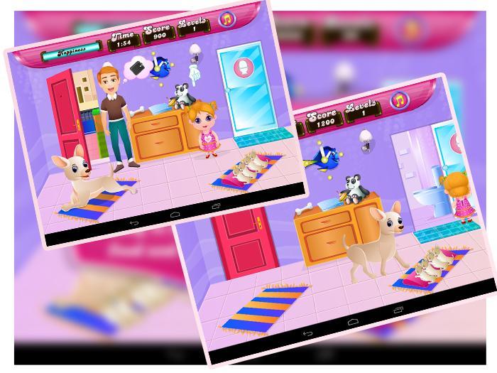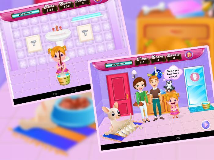 赤ちゃんクロエは両親が留守で夕方に戻ってきたので、家に一人でいます。彼女は母犬と彼女の4匹の子犬の世話をしなければなりません。クロエが犬と子犬を養うのを手伝うことができますか?それはひどく空腹なので、最初に母犬を養います。子犬が母親から牛乳を持っているのを手伝ってください。ただし、一度に3つだけを覚えておいてください。なんてこった!子犬は床を汚しました。クロエが床をきれいに掃除するのを手伝ってください。素晴らしい!あなたはリトルクロエを助けることによって素晴らしい仕事をしました。ほら、彼女の両親が来ました。彼らも、子犬と母犬の世話をしてくれたクロエに感謝しています。この興味深いガールゲームは、ドリーガルによって設計されています。