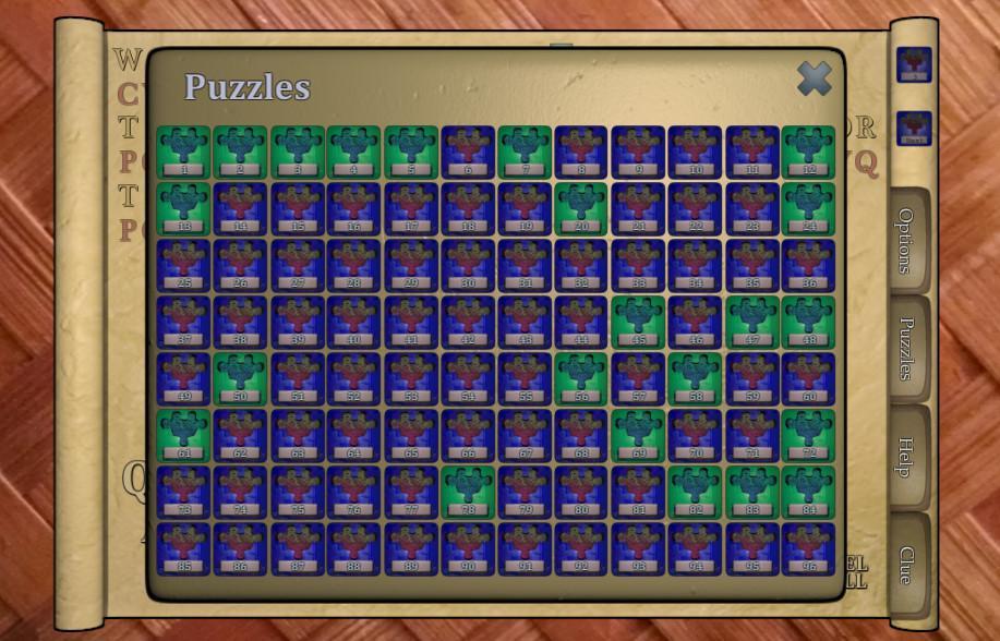 引用、フレーズ、事実、トリビア。各パズルには、できる手がかりが付いています