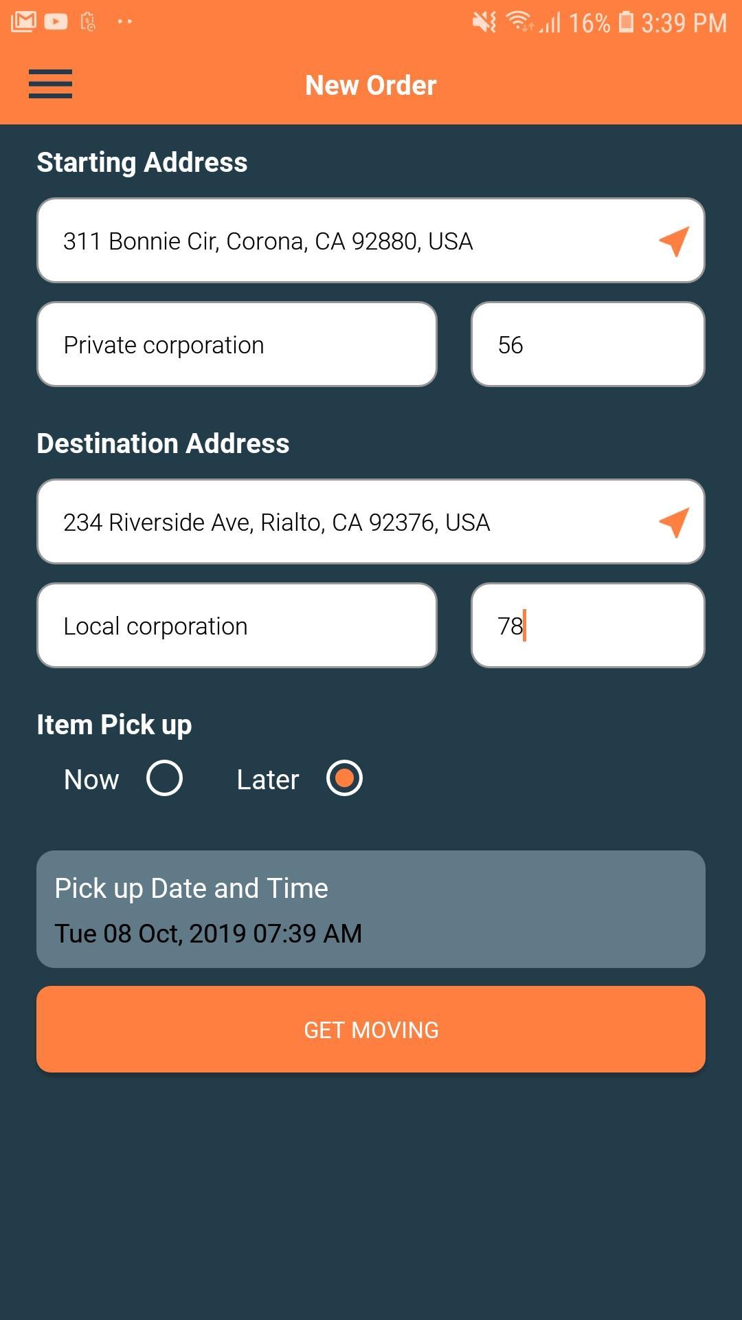 完全な価格は、隠された費用や料金なしで注文する前に前もって推定します。距離と時間に基づくシンプルで手頃な価格設定。ローカル、バックグラウンドチェックおよび審査されたトップ評価のドライバーがトラックとバンを備えています。アイテムは、100万ドルの負債保険で完全に保険をかけられています。ドライバーとの完全な追跡と直接的なコミュニケーション。安全で、手間のかからない、キャッシュフリーの支払い。必要に応じて、週7日利用できます。必要なときに迅速で簡単なリクエストとドライバーの接続。