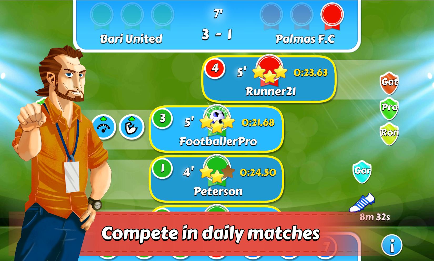 サッカーのキャリアを築くために、試合、戦い、課題から報酬を得てください。
