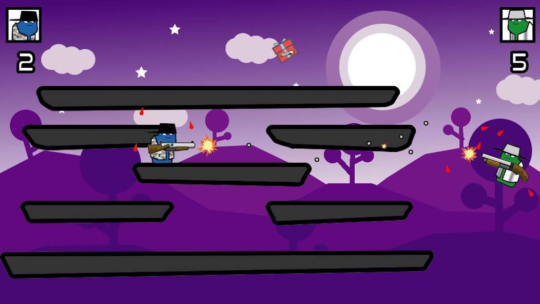 伝説的なイタリアのマフィアの帽子で、私たちの濃い青の男は水平にそして垂直に動き、敵を撃つために上下にジャンプします。