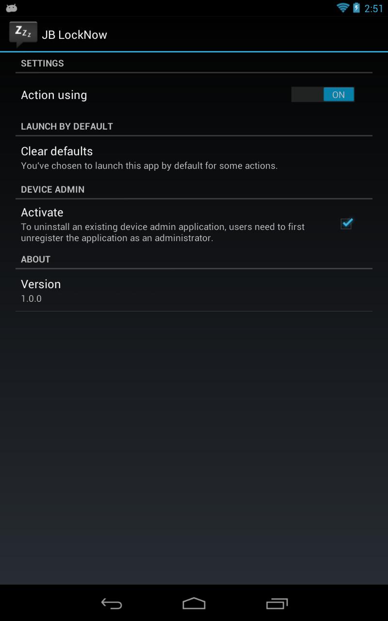 JB LockNow is runs over Android 4.1(Jelly Bean).