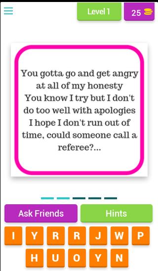 Justin Bieber - Guess the Song is an unofficial application. Justin Bieber - Guess the Song only contains fragments of lyrics and does not possess songs that infringe copyright. This application is created to entertain, has educational purposes and the distribution of knowledge, is just a fan-made.