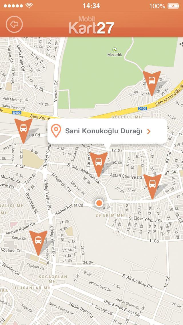 With the Mobile Kart27 application, which is a service of Gaziantep Metropolitan Municipality, you can watch the bus route information, arrival times of the bus you want instantly and from your mobile phone.