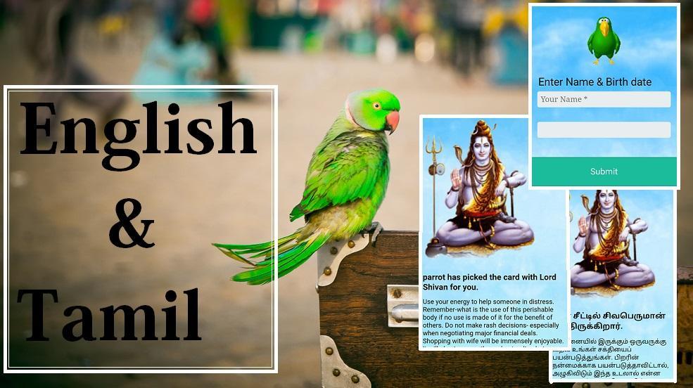 Parrot Astrology (Kili Josiyam) which is most famous in Tamilnadu, is very useful to predict your Future. This Kili Josiyam will find your Lucky Number with your favorite God . Based on Tamil astrology, panchangam, Agathiyar astrology and Agathiyar Arudam, the parrot can tell you the most accurate prediction for your Future.