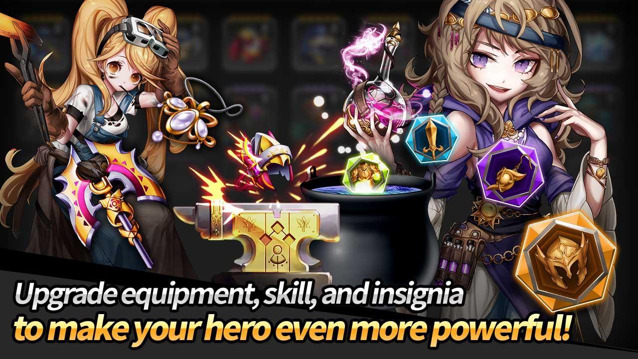 You must continuously obtain better equipment, exclusive weapons, and insignia, as well as upgrade heroes and skills to form the most powerful team.