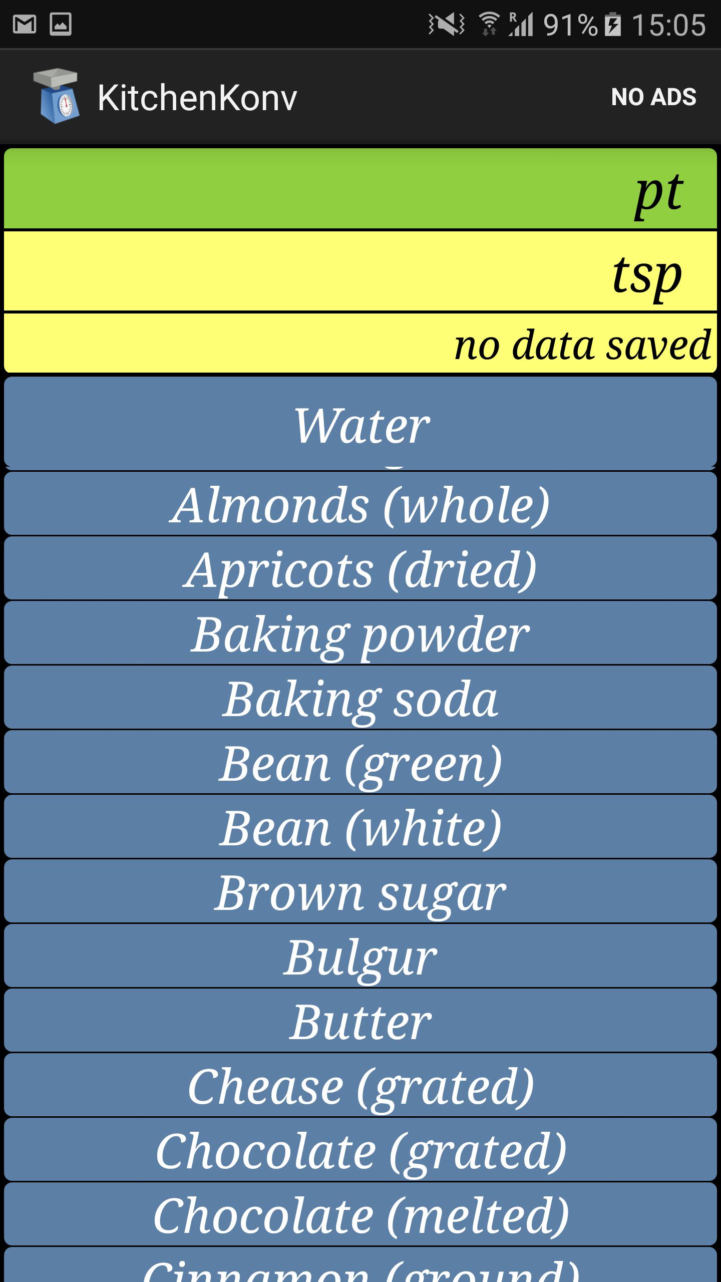 Kitchen Converter helps you to convert many cooking ingredients in units of volume and weight.