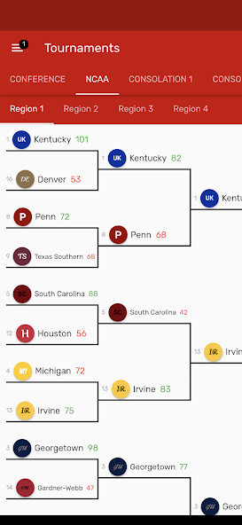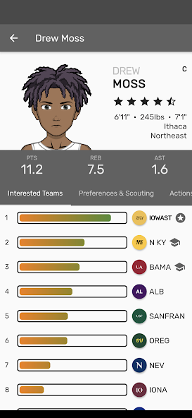 자세한 대학 농구 시뮬레이터. 프로그램을 푸른 혈액 상태로 높이십시오!