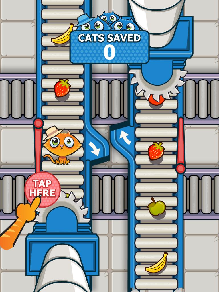 많은 수의 길 잃은 고양이가 과일 공장으로 들어갔다. 공장의 컨베이어 벨트를 감독하는 사람은 공장 기계에 의해 고양이 스무디로 바뀌지 않도록하는 것이 당신의 임무입니다!