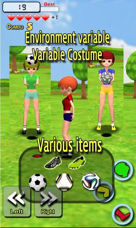 Real 3D Football Juggling 3D 축구 공 및 인체의 특성에 현실적인 표현 물리학을 적용합니다.