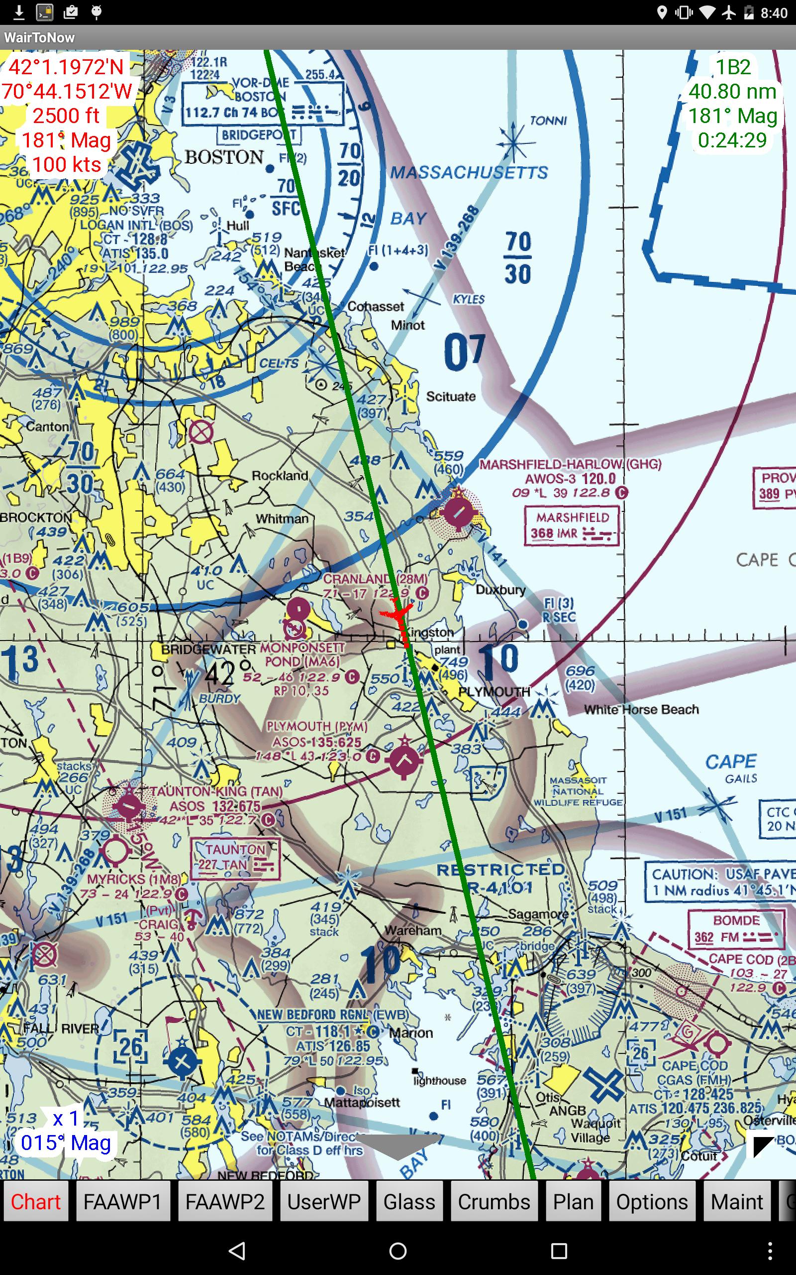 앱은 섹션, 터미널 영역 차트, 헬리콥터 차트 및 세계 차트의 남은 내용을 포함하여 미국 차트가 다루는 영역을 다룹니다. 또한 지리적 인 접근 판과 공항 다이어그램뿐만 아니라 근처 $ 100 햄버거 스탠드로 걷기/자전거를 타기 위해 OpenStreetMaps를 통한 매핑도 포함되어 있습니다. 또한 모든 공항에 대한 OpenStreetMap 지원 활주로 다이어그램을 제공하지만 공식 FAA 제공 공항 다이어그램 플레이트가없는 공항에는 주로 사용됩니다. 접근 플레이트에는 사용자가 구성 할 수있는 옵션 온 스크린 DME 디스플레이가 포함됩니다.