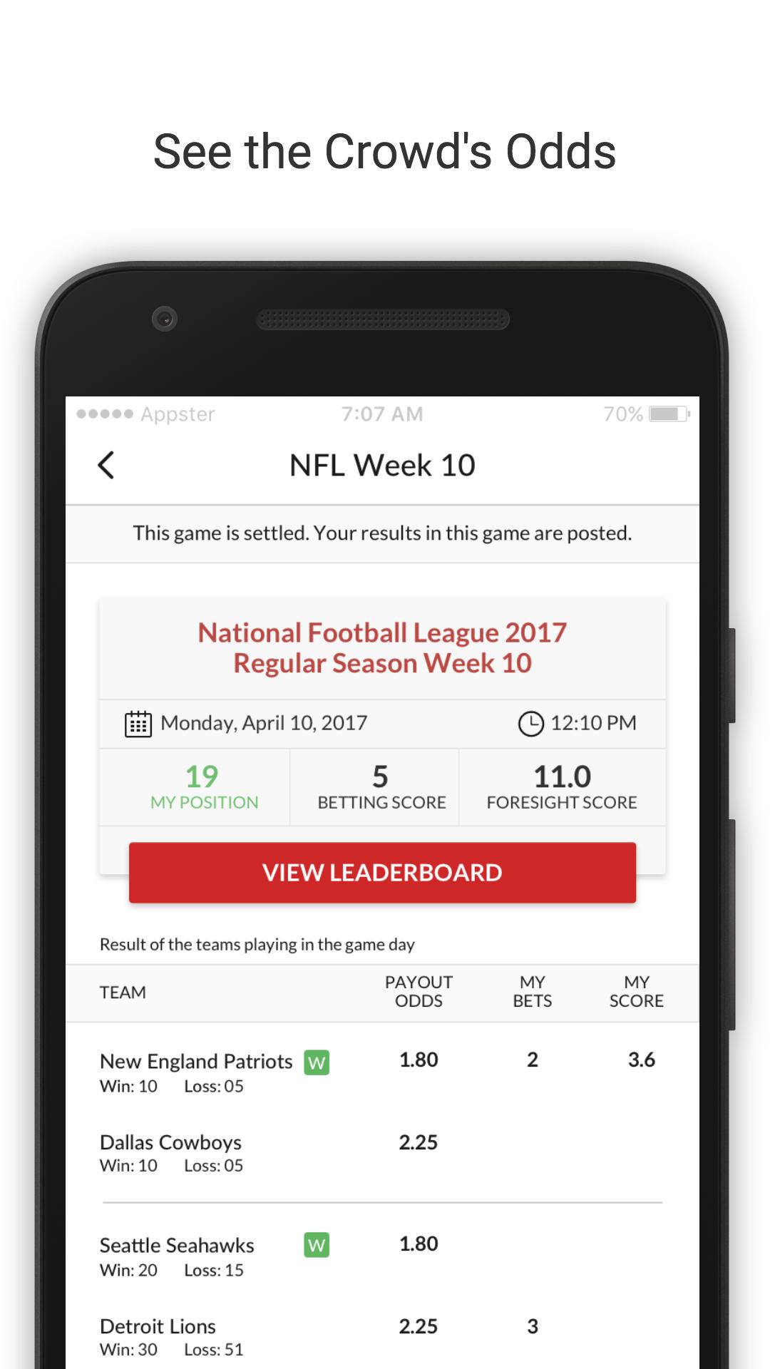 Virtual betting and crowd-sourced odds on US professional sports. Play is free.
