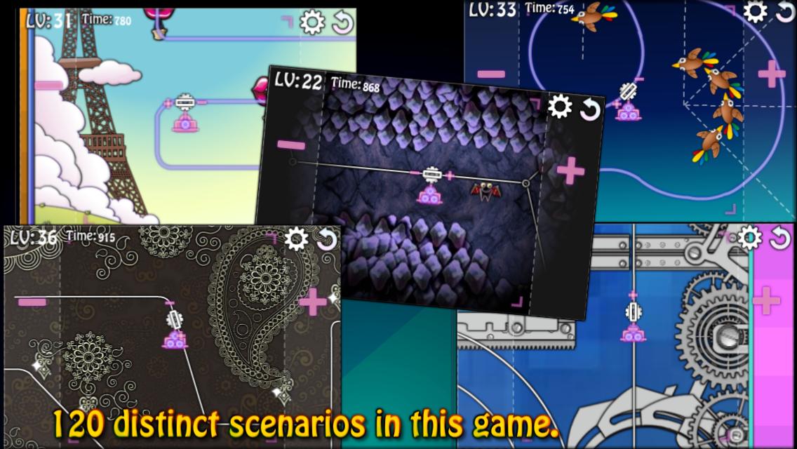 You will experience 120 distinct scenarios in this games with excellent display. Try not to touch the obstacles and once you noticed the movement patterns of them, you may pass easily.
