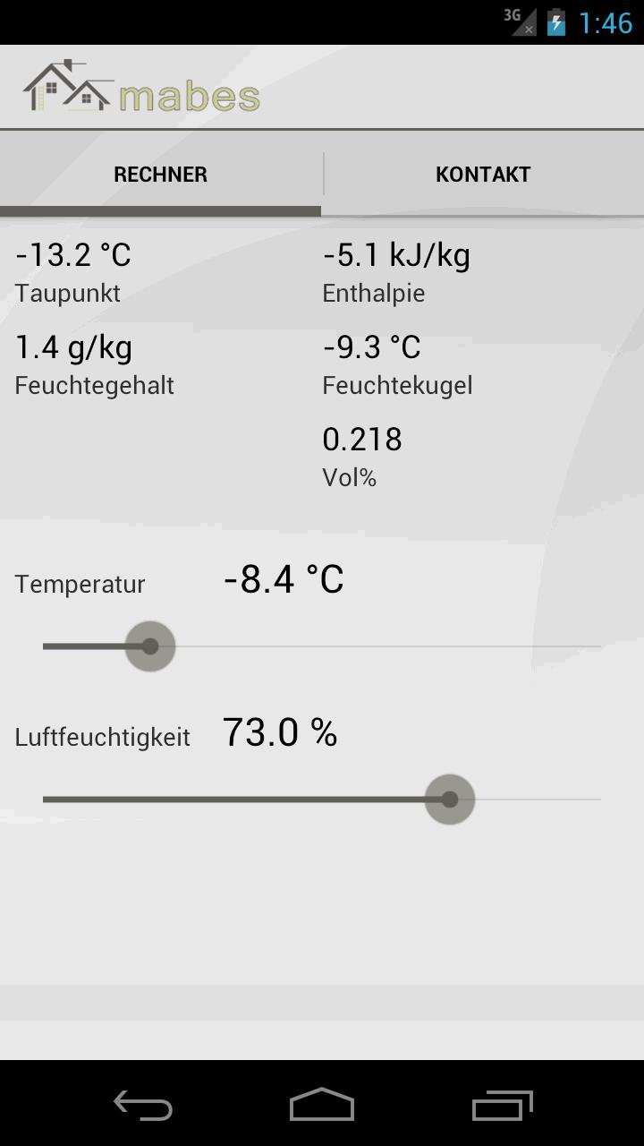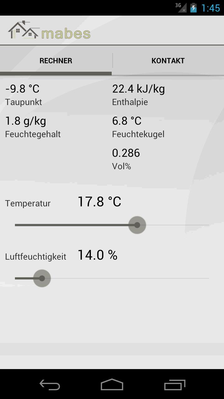 After entering temperature and humidity, the Mabes Rechner simply calculates dew point, moisture content, moisture ball and enthalpy.