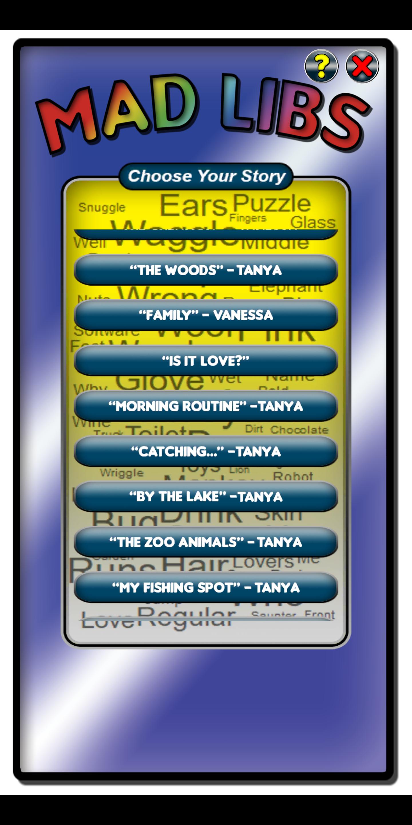 Mad Libs are stories where the user (you) enter your own information to fill in the blanks of pre-written stories and create randomized stories that can be extremely entertaining. take your time, choose your words carefully, be creative, be random!