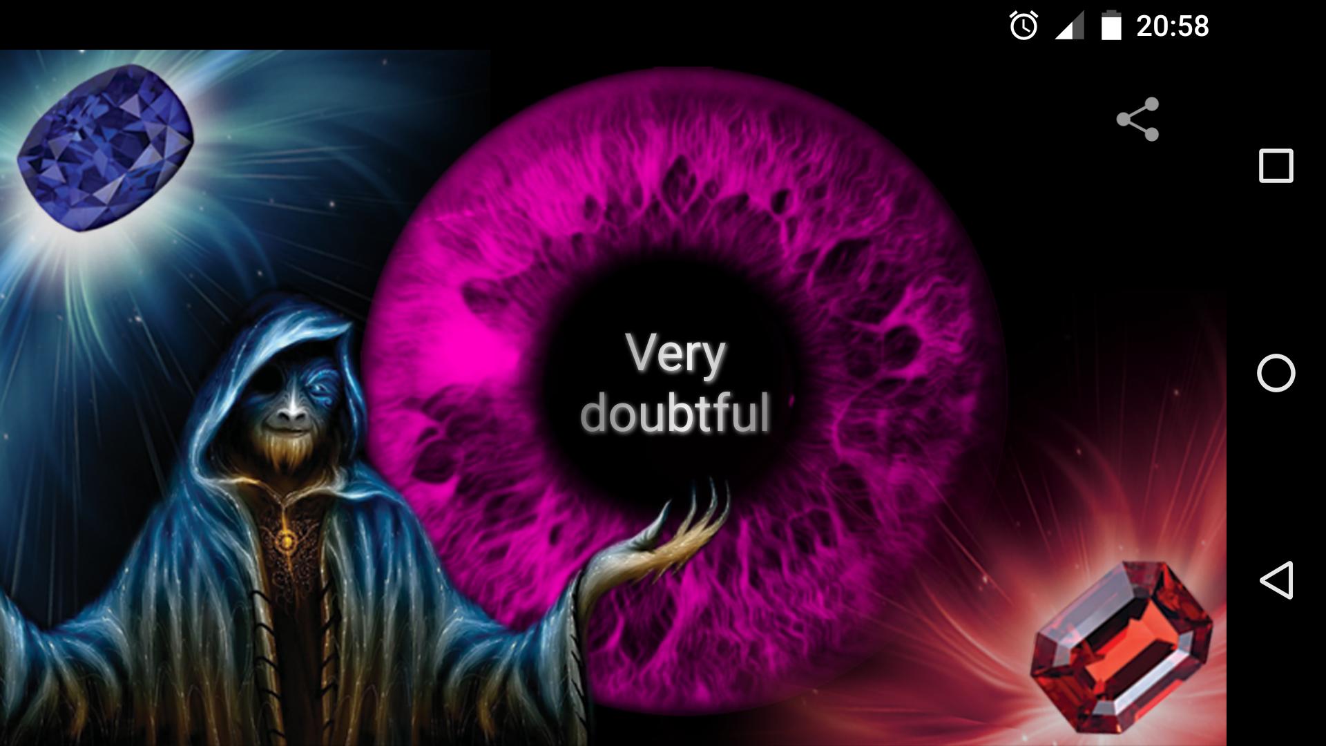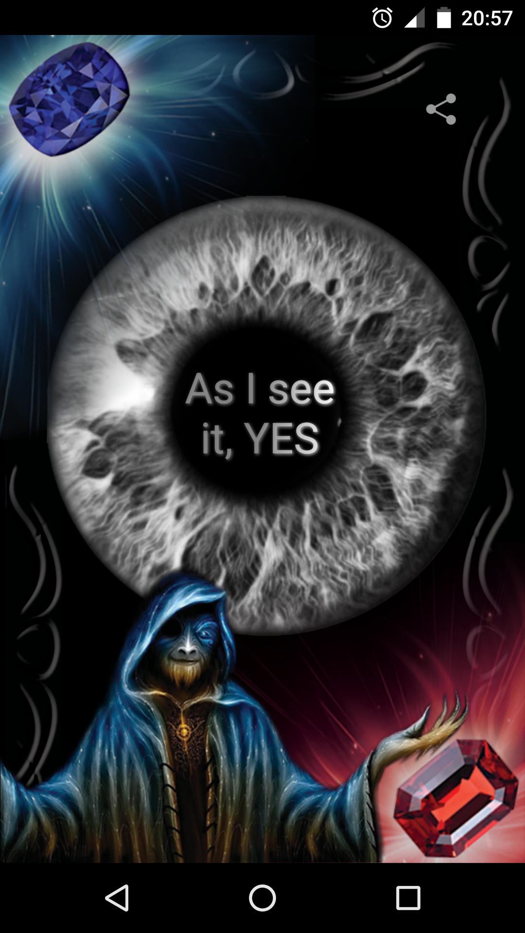 This app is purely for entertainment purposes. The developers of "Magic eye" bear no responsibility for any action taken by the user as a result of the answers given by the application. By installing The Eye of Fate, the user accepts full responsibility for their own actions and their consequences.