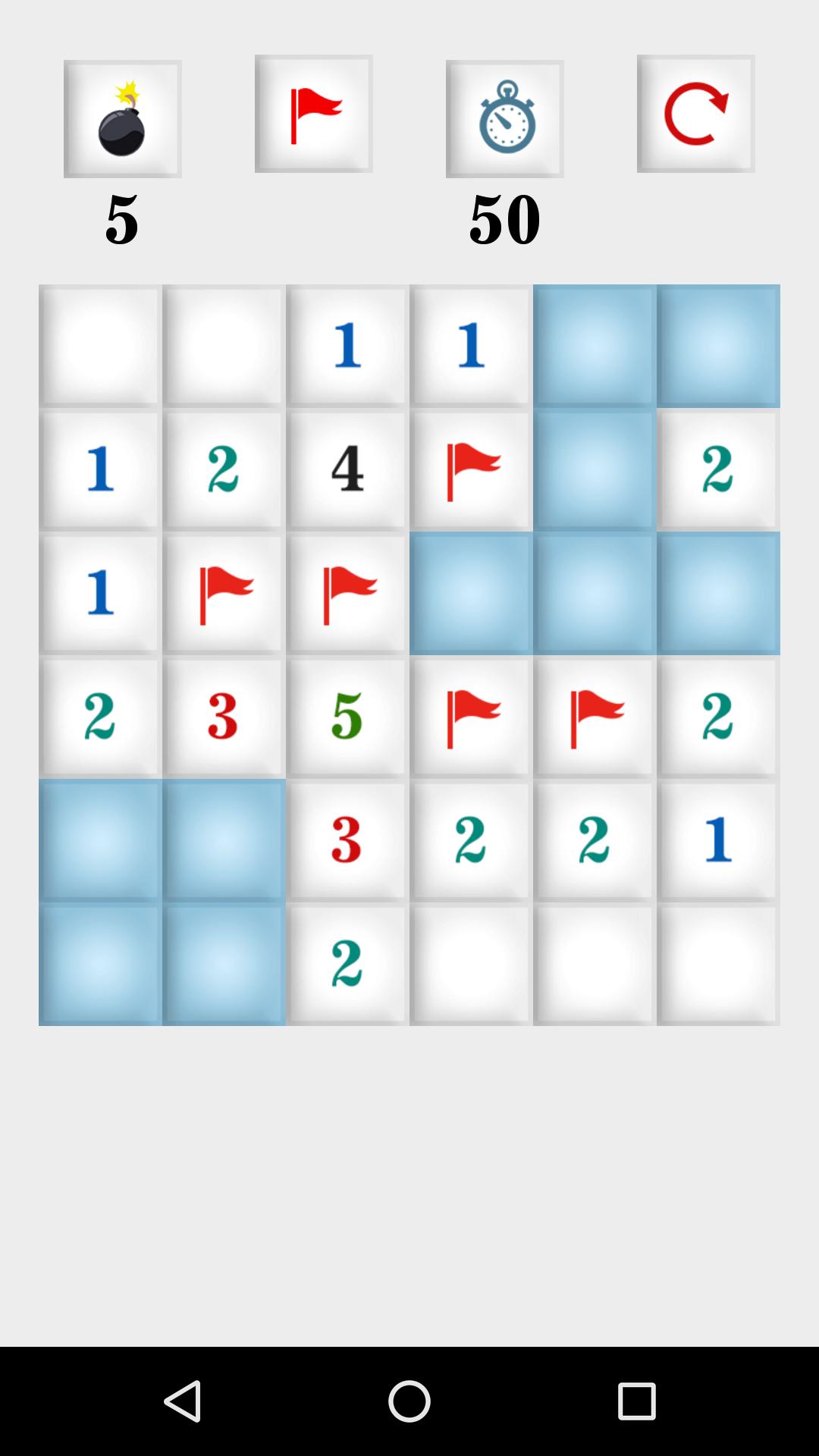 The objective of the game is to clear a rectangular board containing hidden "mines" or bombs without detonating any of them, with help from clues about the number of neighboring mines in each field.