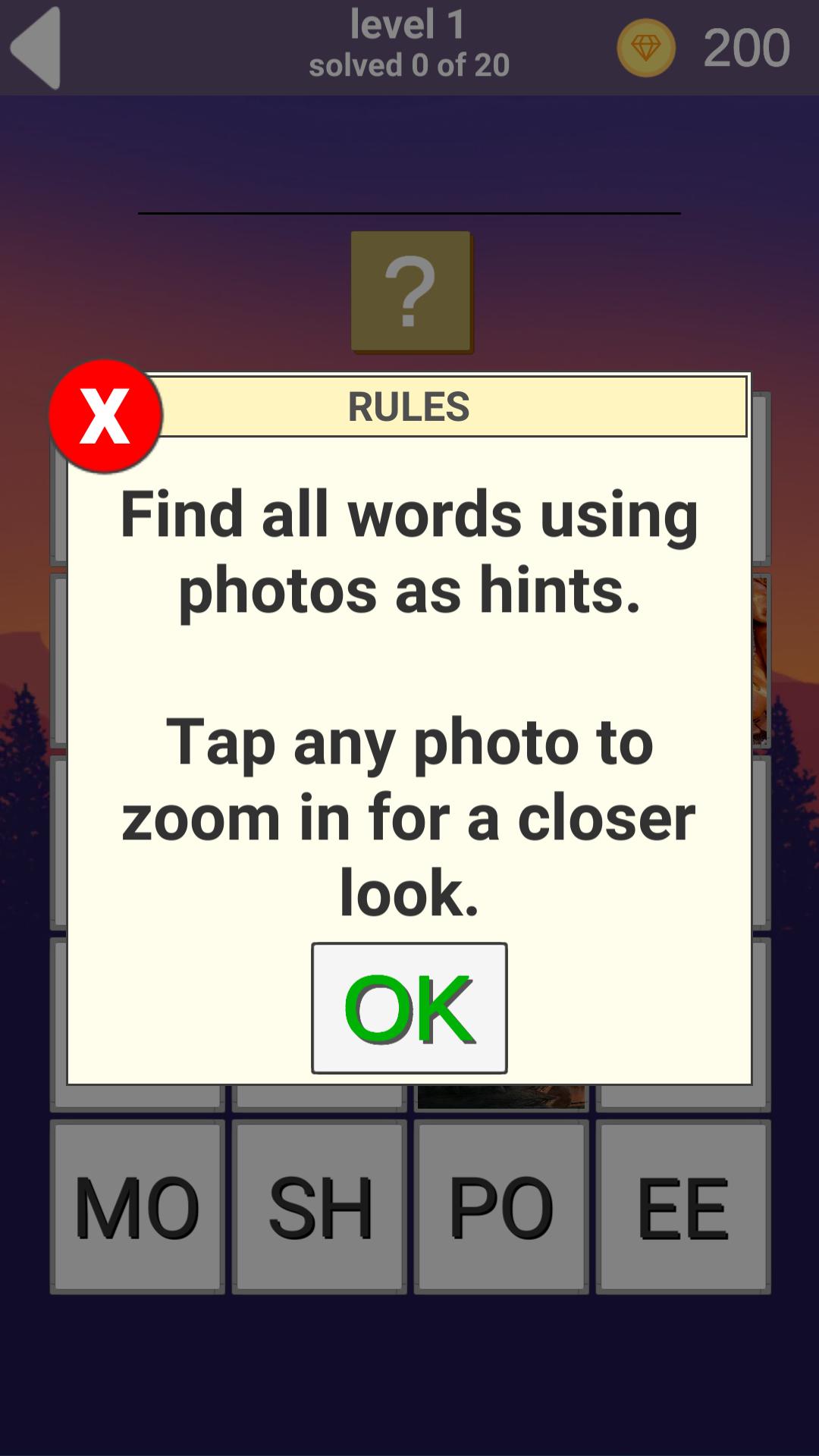 Guess the hidden word using the photo for the clue, the words are divided into fragments, the riddles are of different complexity, from easy words, which take seconds to solve complex words, which will take a lot of time to resolve.