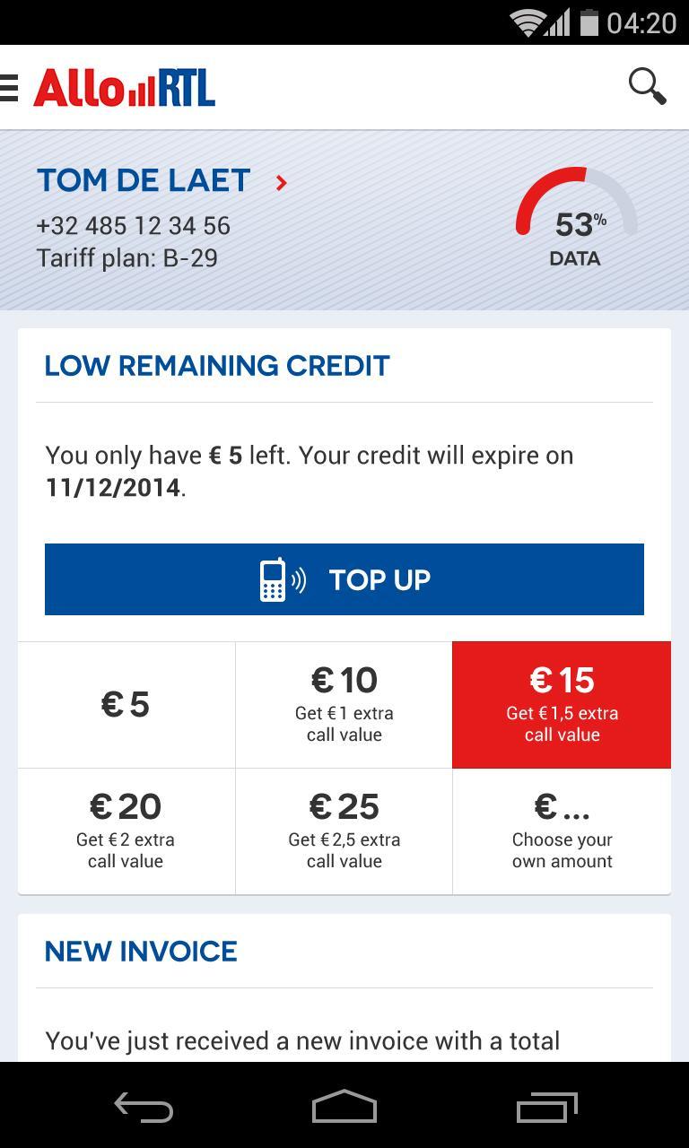 The My Allo RTL application is only available for all active Allo RTL customers via Allo RTL’s EDGE, 3G and 4G mobile networks or by WiFi. Use of the application is free. The price of the data usage linked to downloading and using the app depends on your call plan.