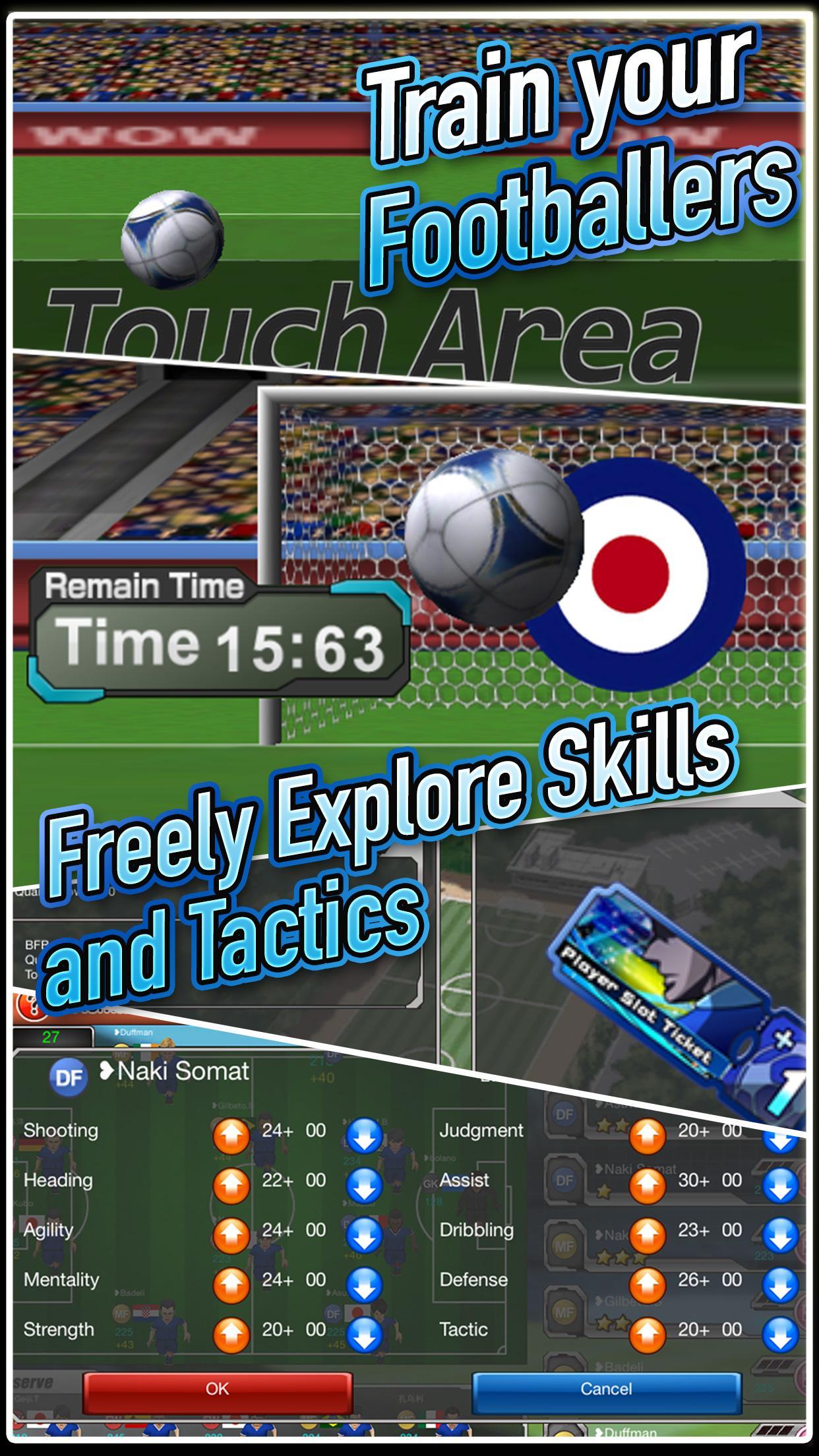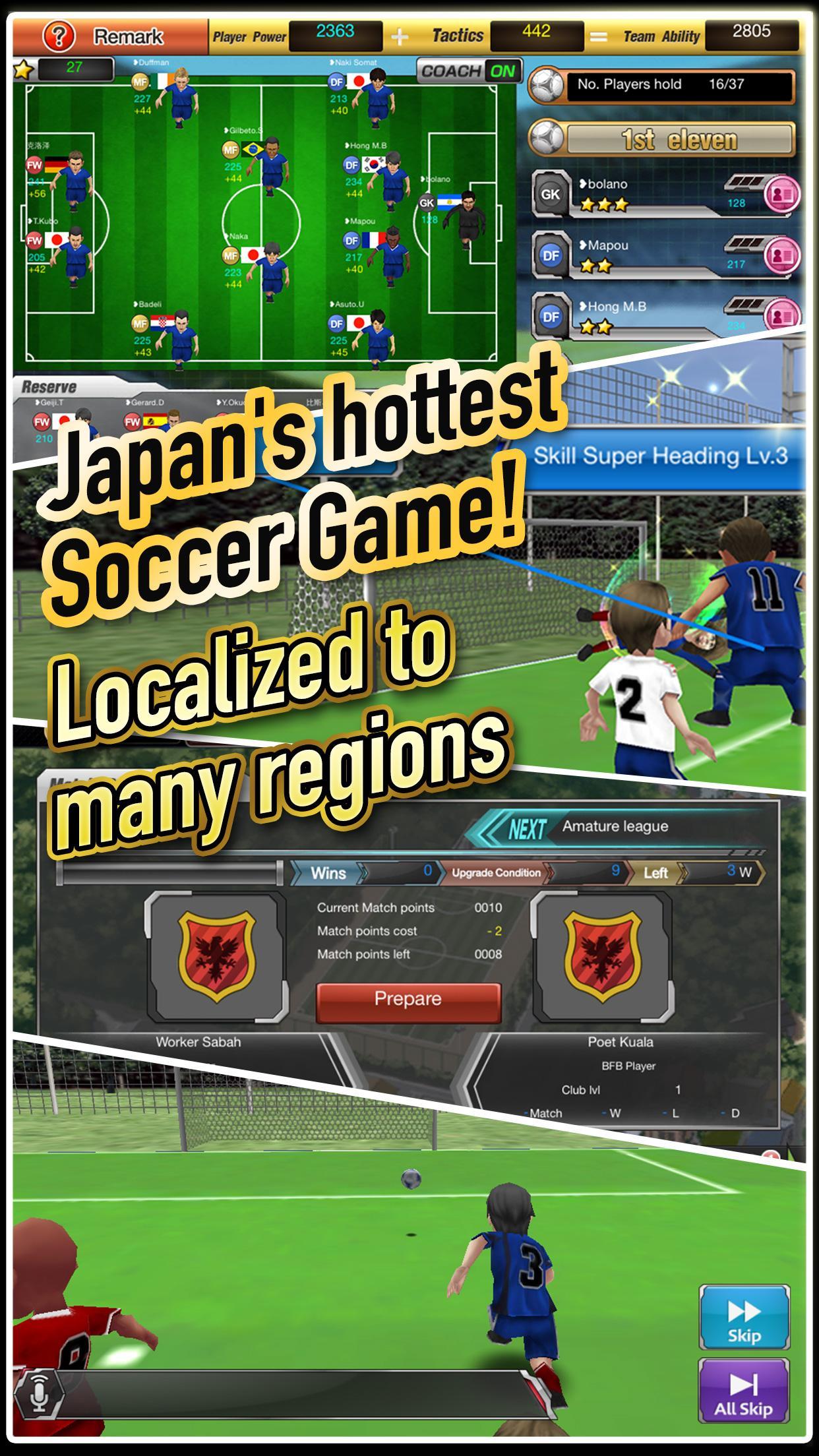 Grow your footballers, train your team, and head towards the top league. Lead your club to defeat strong opponents from nearby areas and the world-class teams soon to be released, and fight to become the greatest team in the world!