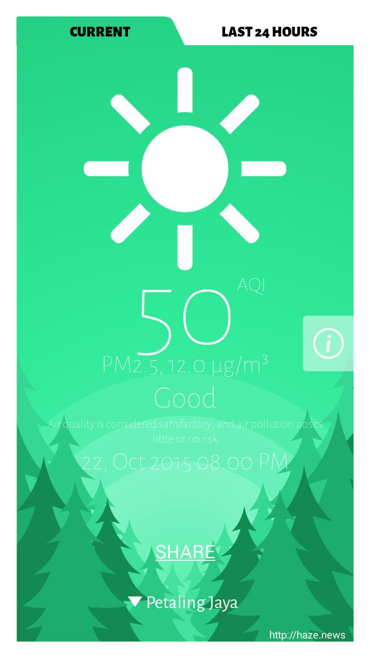 Get free real-time Air Quality Index (AQI) calculation based on PM2.5 (US standard for measurement of air quality) for Malaysia - apart from the usual API calculation! The current AQI reading will be updated every 5 minutes, with data tracked and recorded every 24 hours.