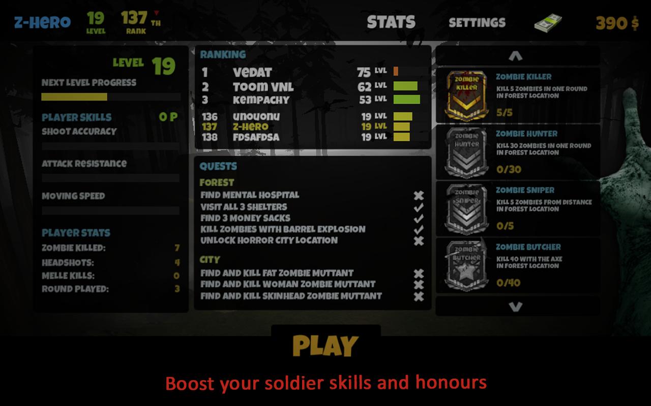 This one mysterious day he is the forest chopping wood when suddenly it becomes misty, air starts to stink with a horrible smell of dead bodies and although fog is so thick our marine see's zombies rising from their graves placed in forest graveyard. Would you survive the scary day of apocalypse. If you have a great precision and reflex