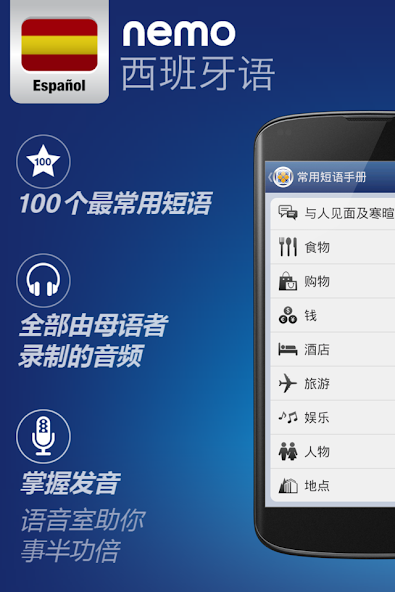 Nemo is designed to start you speaking the most useful words in Spanish immediately and confidently. With millions of downloads from around the world, Nemo is now available for Android phones and tablets.