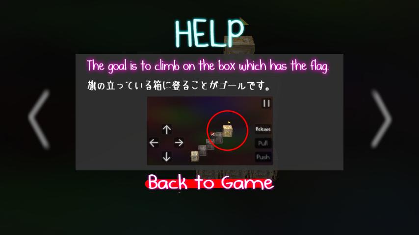 This is a puzzle game using simple three operations:"Push", "Pull" and "Hang".