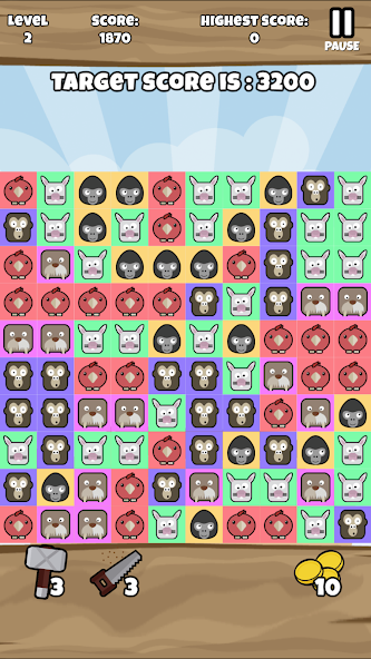 The game will proceed to the new level after you have to get enough point to meet the target. And you will get a lot of bonus after you clear all the blocks of the animal.