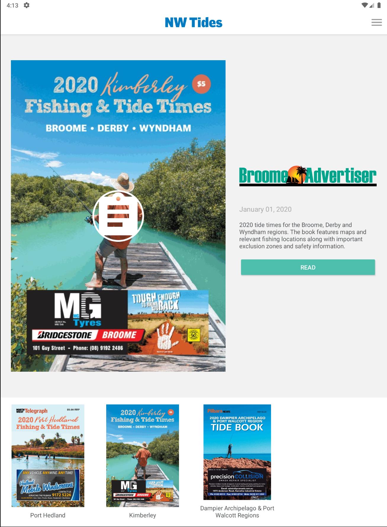 The NW Tides app will carry 3 separate products that contain tidal daily movements for a 12 month period in 2020. The tidal information ranges across the North West of Western Australia from Wyndham, Derby and Broome in the Kimberley to Port Hedland, Port Walcott and the Dampier Archipelago in the Pilbara.