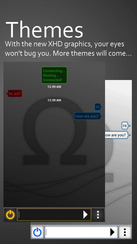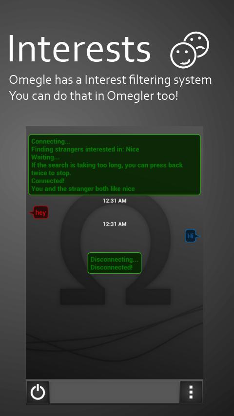Ever wanted to use Omegle on your Android phone? But you can't seem to find a decent app for it? Well look no further, OHMegler is here! And you can do alot of things that you can on Omegle, It's easy and fast.